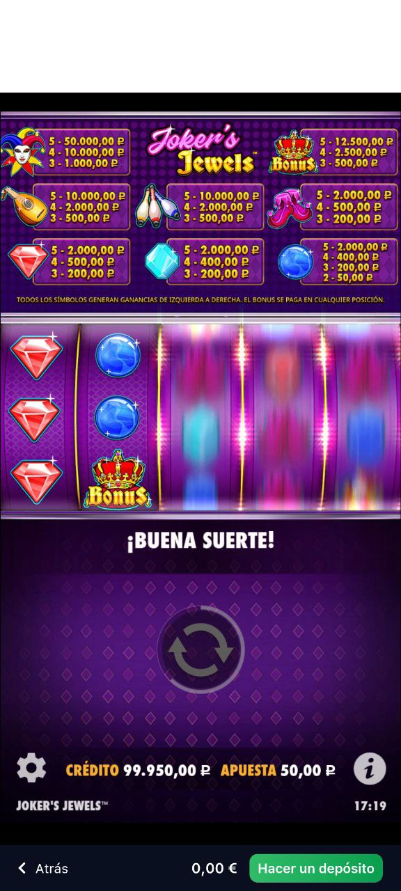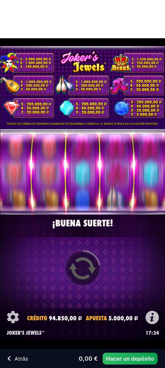 Joker Jewels fue desarrollado y lanzado en 2018 por Pragmatic Play. Este slot se caracteriza por ofrecer ganancias pequeñas con bastante frecuencia, lo que permite jugar de forma estable y sin grandes altibajos. Aun así, cuenta con un interesante potencial de pago de hasta 250 veces la apuesta, gracias a su estructura clásica de 5 carretes, 3 filas y 5 líneas de pago fijas.
